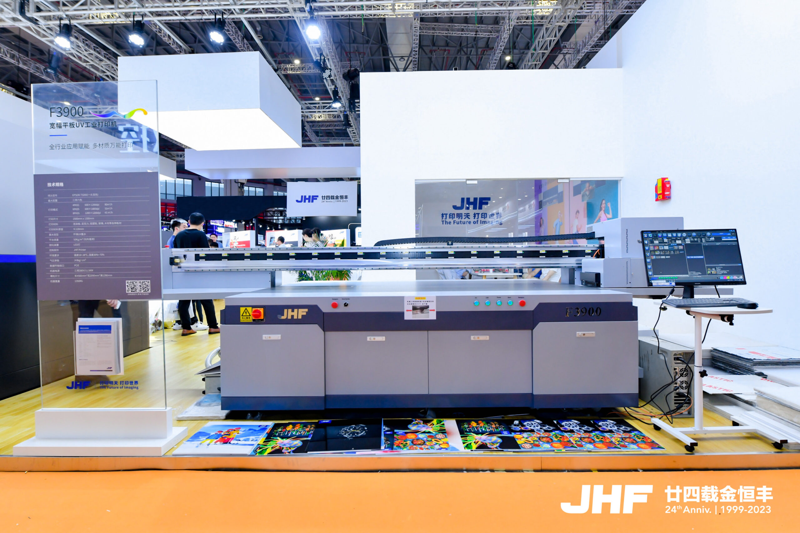 JHF released a Ultra-Wide flatbed industrial printer with optional industrial-grade head, F3900. It deliv[1]ers multiple layers printing with white or varnish. In addition, its variable ink droplet technology ensures that stunning images can be printed on a variety of media with high speed.